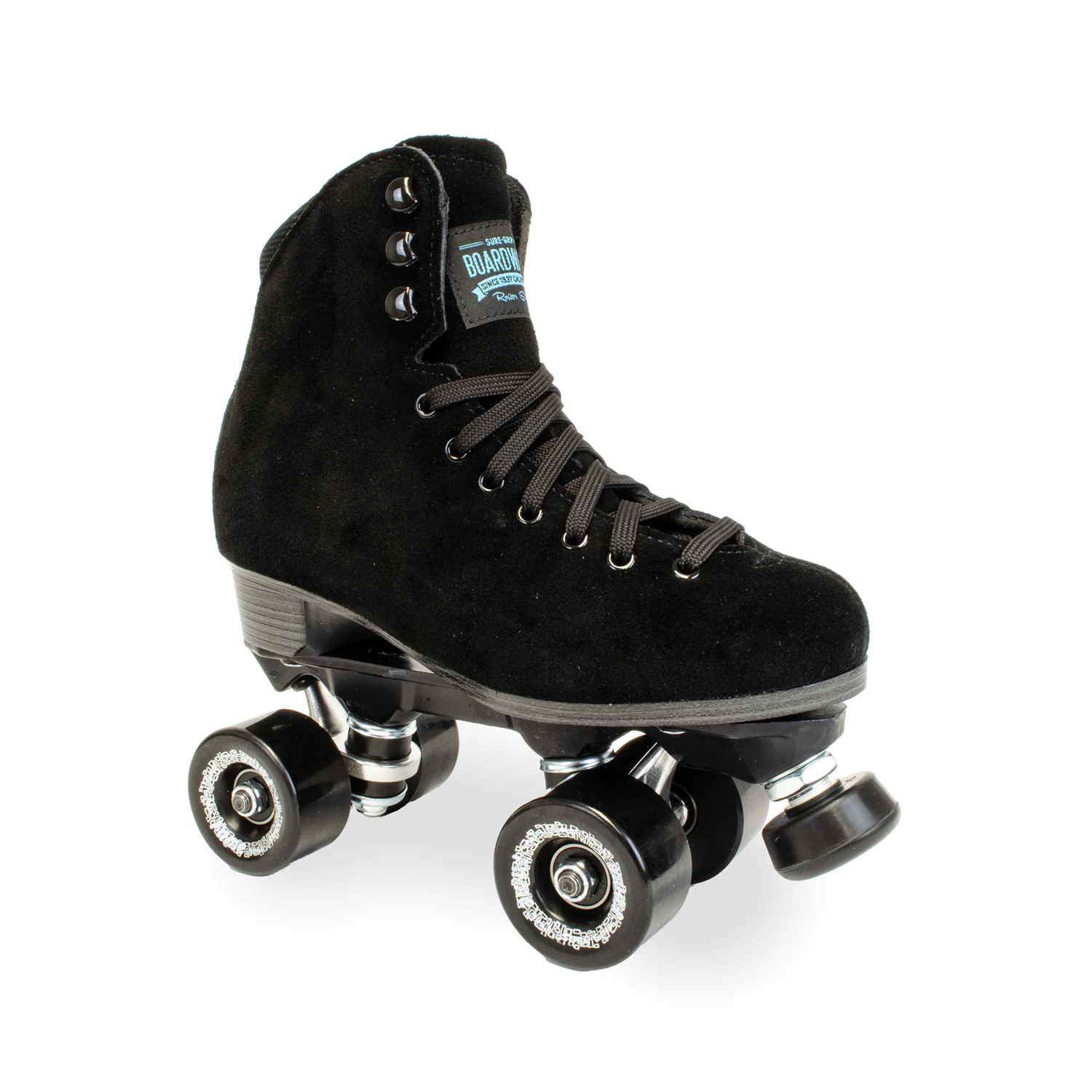 The Boardwalk Plus Fame roller skate for women or men is available in Black. The package includes an all-suede boot for added comfort with a stitched sole for extra durability. Plus model includes a padded liner and roller collar. Fame Artistic wheels allow for a smoother roll indoors.